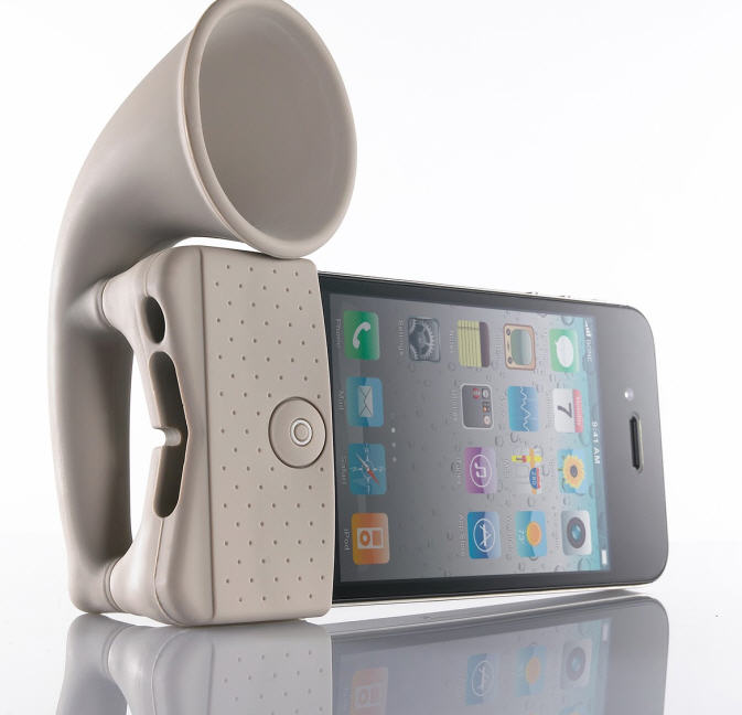 Với vẻ thiết kế đậm chất phô trương mang phong cách truyền thống, bộ loa ngoài Bone Collection Horn Stand giúp mang lại chất liệu âm thanh ấn tượng cho chiếc điện thoại Quả táo với kích cỡ bề ngoài khiêm tốn. Thiết bị được bán với giá 24,95USD này sẽ giúp khuếch đại âm thanh tốt hơn trong khi không hề tiêu tốn thêm pin của điện thoại.