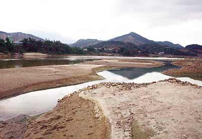 Sông Hồng cạn kiệt, chứa đầy chất độc. (Hình: báo Thanh Niên)