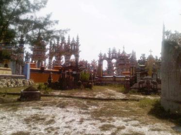 Chúng tôi đi bộ một vòng và cảm nhận về một thành phố người chết kỳ dị, nơi mà mỗi căn nhà người chết “nghèo” nhất cũng có giá không dưới vài chục ngàn đôla, nơi có vô số long-lân-qui-phụng, có vô số ảnh thờ, tượng thánh, nơi mà cảnh giới cõi trên hiện ra màu mè rực rỡ qua từng màu miểng chén, nơi mà công đức danh phận tại thế được tô vẽ trên bia mộ bằng đủ mọi kiểu chữ. Nhưng nơi đây cũng là chỗ thường ngày chẳng mấy khi có bóng người, chỉ thường thấy gia súc và côn trùng, đến cỏ cây cũng trơ trụi vì bị biệt thự người chết chèn lấn.