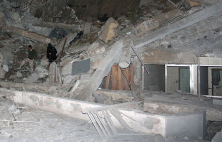 Một tòa nhà là trung tâm chỉ huy nằm bên trong khuôn viên dinh thự của Tổng thống Gadhafi ở nam thủ đô Tripoli đêm chủ nhật đã bị tên lửa của liên quân phá hủy trong đợt không kích thứ hai nhằm thiết lập một vùng cấm bay trên bầu trời Libya.