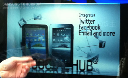 Màn hình trong suốt của Samsung sẽ có kết nối HDMI và USB. Theo Samsung, loại màn hình này có thể tiết kiệm đến 90% điện năng tiêu thụ so với các loại màn hình truyền thống. Người sử dụng có thể nhìn xuyên qua màn hình giống như kính. Dự kiến, màn hình này sẽ được sử dụng nhiều trong quảng cáo và “truyền thông tương tác”. Bên cạnh đó, hiện đang có một số nguyên mẫu máy tính xách tay sử dụng màn hình trong suốt rất hấp dẫn này.