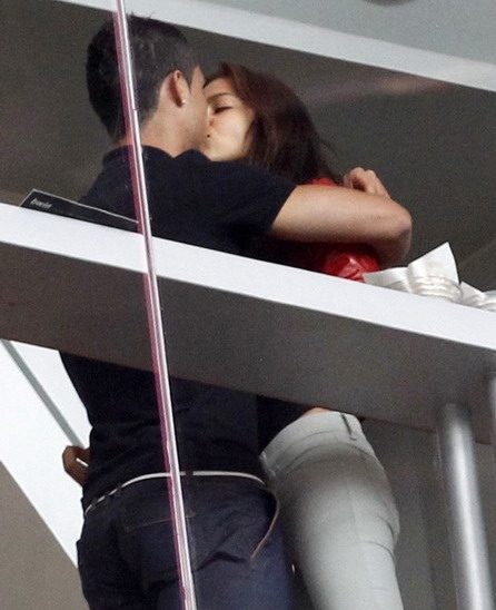 Mặc kệ đồng đội vất vả chịu trận thua 2-3 trước Real Zaragoza ngay tại Bernabeu đêm qua, Ronaldo thoải mái tận hưởng niềm vui trên khán đài bằng việc hôn đắm đuối cô bồ người mẫu nóng bỏng quốc tịch Nga.