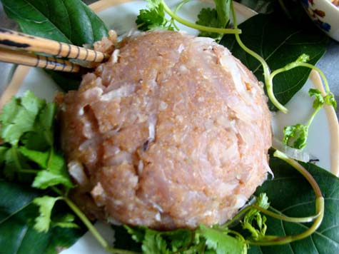 Tôi đã có dịp hiếm có, được tận mắt từ đầu đến đuôi, từ cảnh bác đồ tể cầm dao chọc tiết lợn, đến cảnh moi thịt sống ra băm, cho đến khi món thịt sống lên mâm cỗ và dựng tóc gáy với cảnh hàng trăm người, đủ cả già trẻ, lớn bé, nam thanh, nữ tú luôn tay gắp thịt sống cho vào miệng, nhai một cách ngon lành.
