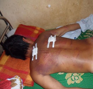 Những bức h́nh đăng trên các báo cho thấy khắp người nạn nhân, nhất là lưng và mông, bị bầm tím đen.