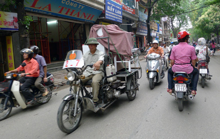 Không thể phủ nhận những chiếc xe ba bánh tự chế có khả năng vận chuyển tốt, chi phí rẻ, rất được ưa chuộng. Ta có thể gặp hàng loạt xe tự chế trên đường phố Hà Nội bởi tính năng động và... không có giờ “giới nghiêm”.