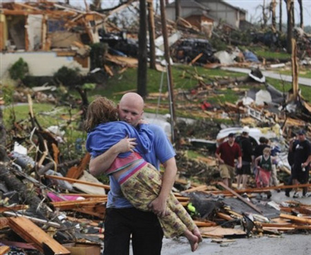 “Home Depot bị san phẳng. Walmart bị phá hủy. Các trạm xăng, tòa nhà. Khắp nơi tôi chỉ thấy chúng hoặc bị hư hại hoặc bị phá hủy hoàn toàn”, một phóng viên ảnh tự do mô tả về mức độ tàn phá do trận lốc xoáy gây ra ở Jopin.