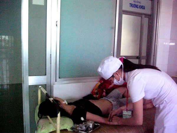 Em Nguyễn Thị Cương đang được chăm sóc tại bệnh viện Quảng Nam Tại đây Cương lên một xe ô tô khách 16 chỗ ngồi chạy theo hướng Quảng Ngãi – Đà Nẵng. Do xe không còn chỗ để ngồi nên chủ xe “nhét” Cương vào ngồi phía sau đuôi xe (nơi xe để hàng hóa). Tuy nhiên trong quá trình xe chạy, do cửa xe không đóng được nên Cương đã rơi xuống đường và bị thương rất nặng.