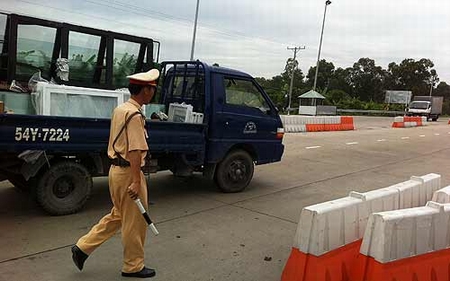 CSGT làm nhiệm vụ trên đường cao tốc TPHCM - Trung Lương.