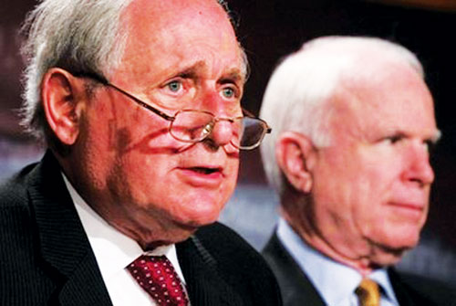 Ông Levin và McCain tại cuộc họp báo - Ảnh: AFP