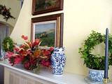 Potted plants from your garden, patio or porch can bring in a breath of fresh air to a room with limited windows. Consider having some fresh herbs in your kitchen, or placing plants on top of the refrigerator, cabinets or kitchen counters.