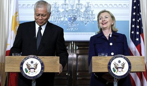 Ngoại trưởng Mỹ Hillary Clinton và người đồng cấp Philippines Albert del Rosario Ảnh: AP