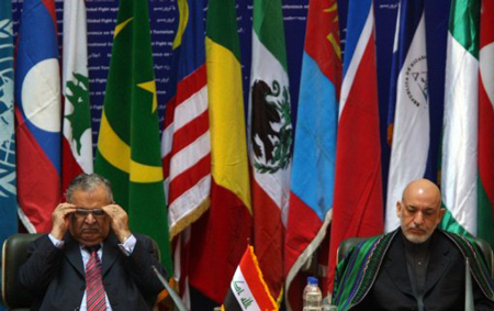 phải) và Tổng thống Iraq Jalal Talabani tại "Hội nghị Quốc tế về Cuộc chiến Toàn cầu chống Khủng bố". Ảnh: