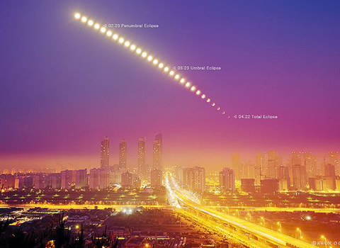 Nhiều bức ảnh được ghép lại với nhau về cảnh nguyệt thực xảy ra ở thủ đô Seoul, của Hàn Quốc ngày 16/6. Ảnh: TWAN.