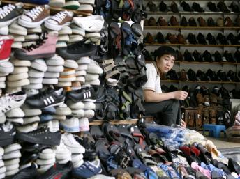 Một cửa hàng bán giày dép tại Hà Nội. Hàng hoá Trung Quốc đang tràn ngập thị trường Việt Nam.