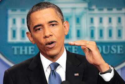 Tổng Thống Obama lên tiếng trong cuộc họp báo ở Ṭa Bạch Ốc vào sáng ngày Thứ Hai sau khi có cuộc họp với giới lănh đạo Quốc Hội vào tối Chủ Nhật để tiếp tục thúc đẩy có thỏa thuận trị giá $4 ngàn tỉ cắt giảm chi tiêu trong thập niên tới. Tuy nhiên điều này gặp sự chống đối của phía Cộng Ḥa về việc tăng thuế. Hiện nay có nhiều dấu hiệu cho thấy hai bên có thể đồng ư về con số cắt giảm ít hơn $4 ngàn tỉ.
