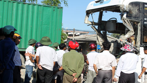 H́nh ảnh chiếc xe khách bị bẹp dúm trong vụ tai nạn khiến 23 người thương vong xẩy ra ở huyện Can Lộc vào ngày 5/7 vừa qua.