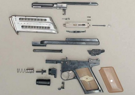 Súng lục bắn đạn không vỏ VAG-73 với hộp tiếp đạn 48 viên.