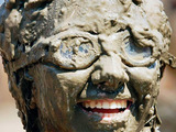 Một người đẹp nở nụ cười rạng rỡ dưới khuôn mặt đầy bùn trong ngày hội tắm bùn ở Michigan, Mỹ hôm 12/7.