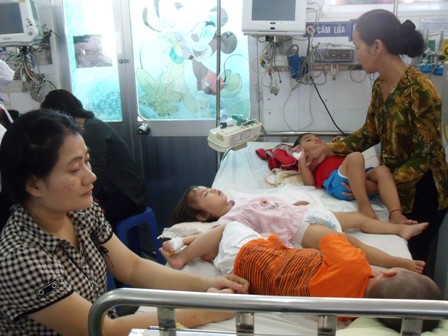 Hiện mỗi ngày tại bệnh viện Nhi Đồng 1 đang phải tiếp nhận điều trị nội trú cho khoảng 150 đến 170 trẻ mắc TCM. Trong khi đó, tại bệnh viện Nhi Đồng 2 số ca mắc bệnh lên tới 180 trẻ mỗi ngày nên toàn bộ khoa Nhiễm đã phải dành riêng cho bệnh nhi TCM, những trường hợp mắc bệnh nhiễm khác phải chuyển qua các khoa khác “nằm ké”.