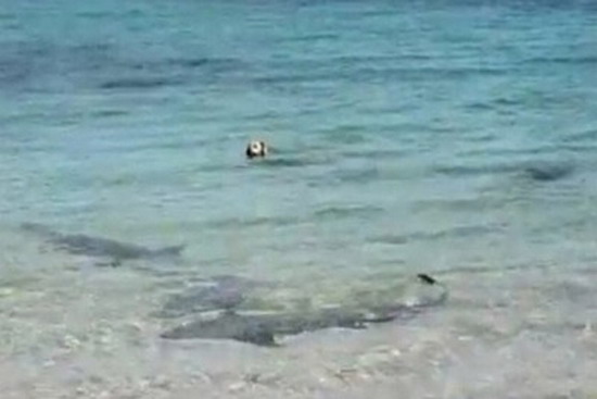 Bầy cá mập xuất hiện và bị chó xua đuổi.