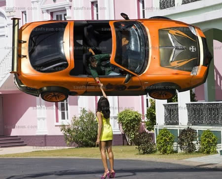 Nam diễn viên của Bollywood, Ajay Devgan, thực hiện pha hành động nghẹt thở, bằng cách đưa đóa hồng cho nữ diễn viên khi đang ngồi trong xe ô tô và lơ lửng trên không trung.