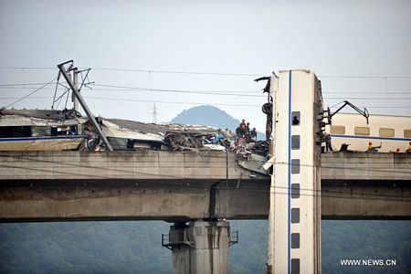 Vụ tai nạn tàu nghiêm trọng xảy ra vào khoảng 8h30 tối ngày 23/7 giờ địa phương tại thành phố Ôn Châu, tỉnh Chiết Giang.