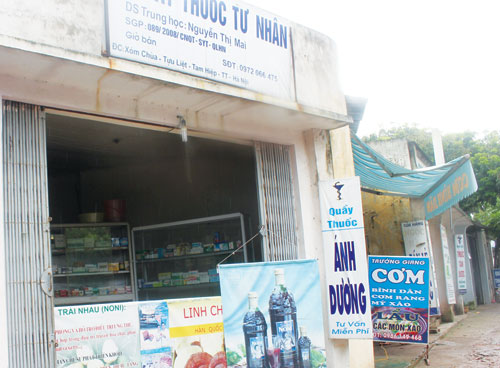 TPCN “đặc trị” ung thư quảng cáo nhan nhản tại các hiệu thuốc gần Bệnh viện K, Thanh Tŕ, Hà Nội - Ảnh: Thái Sơn