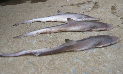 | 3 chú cá mập con vừa được khai thác tại vùng biển Hoằng Trường, Hoằng Hoá (Thanh Hoá). |