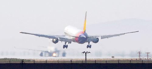 Trong hình là một chiếc máy bay đáp xuống phi trường Incheon, Seoul, nơi cảnh sát phát hiện một người treo cổ tự tử trong một chiếc máy bay của hãng Asiana. (Hình: Park Ji-hwan/AFP/Getty Images)