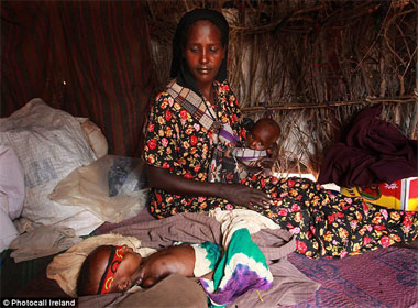 Chị Wardo Mohamud Yusuf địu đứa con gái một tuổi trên lưng, còn bé trai 4 tháng tuổi chị bế trên tay. Ba mẹ con đi bộ ròng rã 2 tuần để thoát khỏi nạn đói và hạn hán kinh hoàng ở Somali.