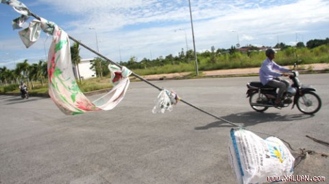 Trước đó hơn một giờ, lực lượng cảnh sát giao thông cũng đã giải cứu hai thanh niên đi xe máy bị vướng sợi dây cáp này và bị xây xát nhẹ. Tại hiện trường, sau khi tai nạn xảy ra, người dân địa phương đã dùng bao nilông, vải gắn lên dây cáp để cảnh báo người đi đường (ảnh).