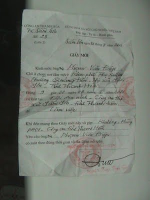 Với tinh thần sống và làm việc theo Hiến Pháp và Pháp luật trong các sự việc vừa qua, tôi có thể chủ quan đánh giá tinh thần làm việc và hiểu biết phải trái của cơ quan an ninh tỉnh Thanh Hóa hơn hẳn cơ quan an ninh tại Thủ đô Hà Nội. Sau khi trao đổi với nhau, cán bộ an ninh tỉnh Thanh Hóa đều thấy được sự hợp pháp của từng vấn đề và thỏa măn trong việc không làm phức tạp vụ việc, không ngăn cản việc xuất cảnh ngày 10.8.2011 của tôi. Tuy nhiên do sự bảo thủ của Bộ Công An, tại sân bay Nội Bài, lúc làm thủ tục tŕnh hộ chiếu xuất cảnh, trên mạng vẫn lưu hồ sơ không cho xuất cảnh và Đội an ninh sân bay Nội Bài đă tham vấn với PA61 tỉnh Thanh Hóa để tôi trở lại máy bay kịp giờ.