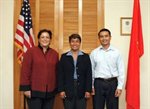 Trung tá Kim Mitchell tại Đại sứ quán Hoa Kỳ tại Hà Nội với Đại biên lâm thời Claire Pierangelo và Tuỳ viên Quân sự Hoa Kỳ Đại tá Patrick Reardon.