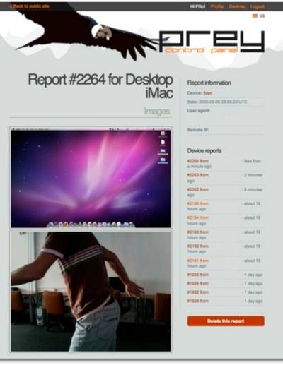 H́nh ảnh và thông tin của tên trộm bị ghi lại bằng Prey (phiên bản dành cho MacBook)