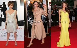 Nếu trẻ trung, cá tính là phong cách thời trang đường phố của Angelina thì sự thanh lịch và duyên dáng lại là gu thời trang thảm đỏ được quý bà yêu thích. Xuất hiện tại buổi ra mắt bộ phim Beowulf, Angelina trang nhã và thanh lịch khi kết hợp váy mini đen cùng áo khoác dài màu camel.
