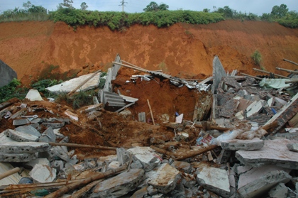 Do đợt mưa lớn kéo dài vừa qua, phía sau ta luy xuất hiện vết nứt và có mạch nước chảy ngầm. Chính quyền địa phương đã cảnh báo các hộ trên di dời đến khu vực an toàn, nhưng do chủ quan, sự việc đáng tiếc đã xảy ra.