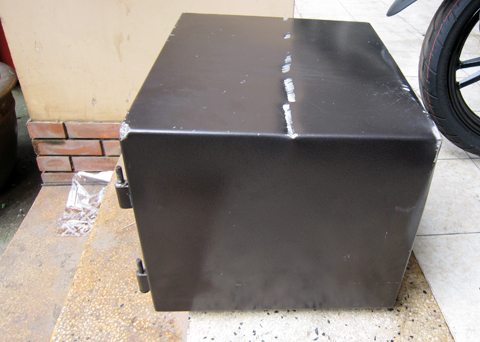 | Chiếc két sắt tang vật của vụ trộm bị thu giữ. Ảnh: T.H |