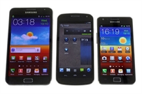 Galaxy Nexus (giữa), bên cạnh hai mẫu smartphone ra mắt trước đó của Samsung là Galaxy Note và S II. Ảnh: