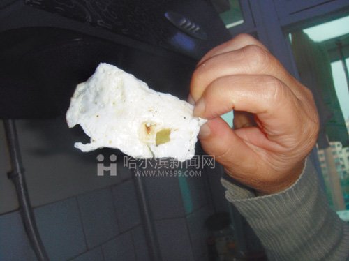 Sau đó, chị Lưu lấy riêng lòng trắng trứng từ một quả khác để rán, và thật lạ là trứng vịt bốc mùi khét như cao su, và khi chín thử lấy tay kéo thì thấy có độ đàn hồi.