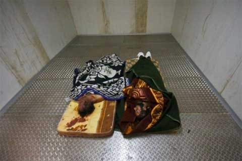 Không có quan chức độc lập hay ngoại quốc nào có mặt, nhà nghiên cứu bệnh học Zentani nói. Báo cáo khám nghiệm tử thi sẽ được chuyển lên văn pḥng tổng chưởng lư trước khi được công bố. Trong khi đó, ba thi thể sẽ được đưa lại thùng lạnh đặt tại một khu chợ bán thịt ở Misrata để công chúng tới xem.