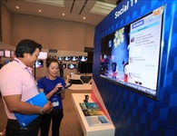 Khách tham quan triển lãm tìm hiểu về các tính năng mới trên TV của Samsung.