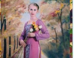 Mặc chiếc áo dài của người Việt trông chị thật duyên dáng, có lẽ bởi văn hóa Việt đă thấm đượm trong tâm hồn chị - một cô gái Nga rất đỗi thân thương với bất kỳ ai khi tiếp xúc - Daria Mishukova.