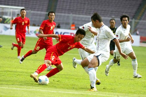 Phút 23 thêm một cơ hội ngon ăn nữa của chúng ta bị bở lỡ. Sau pha phối hợp bên cánh trái, Thanh Trung thoát vào cấm địa trống trải, nhưng anh quá cầu toàn khi không dứt điểm mà căng ngang cho Văn Thắng lao vào. Tuy nhiên "số 9" của Việt Nam chưa kịp chạm bóng đă bị đối phương phá mất.