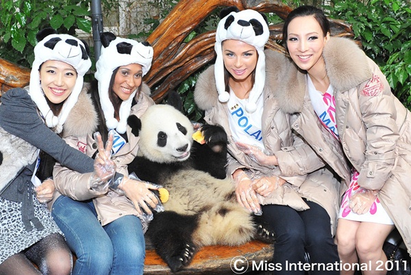 Mới đây, các người đẹp Hoa hậu Quốc tế 2011 đã tới thăm một khu bảo tồn thiên nhiên ở Thành Đô. Tới đây, không chỉ được ngắm nhìn những khung cảnh thiên nhiên xanh tươi và trong lành, họ còn được đi thăm khu nuôi dưỡng loài gấu trúc nổi tiếng của Trung Quốc.