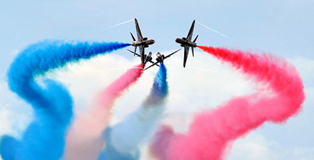 Red Arrows vốn nổi tiếng với các màn nhào lộn trên không, nhả khói màu trắng, xanh và đỏ. Được thành lập năm 1965, Red Arrows đã thực hiện hơn 4.000 buổi biểu diễn tại 53 quốc gia.