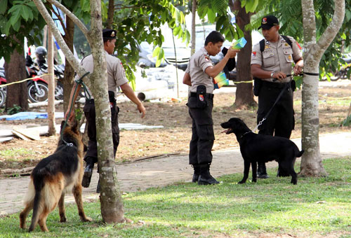Kiểm tra an ninh ngay tại cổng vào của khu liên hợp thể thao Jakabaring