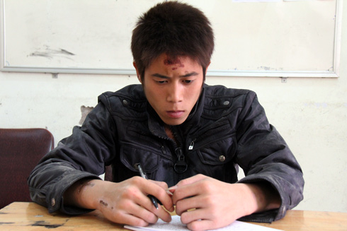 | Phùng Hưng ghi lời khai của mình tại cơ quan công an. Ảnh: Thái Thịnh. |