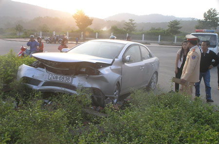 Do phóng tốc độ cao, không làm chủ được tay lái nên chiếc xe du lịch nhãn hiệu KIA 4 chỗ ngồi mang biển kiểm soát 24N- 6836 đã lao thẳng vào dải phân cách, bẹp rúm đầu. Lái xe may mắn chỉ bị xây xát nhẹ.