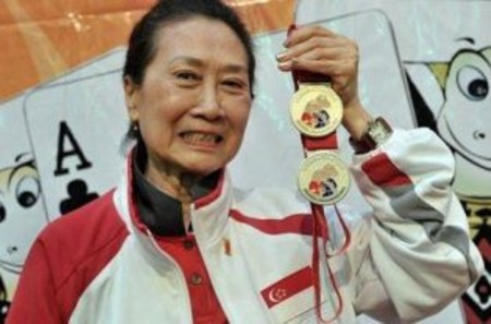 Là giáo viên về hưu, đã có 5 cháu nội/ngoại, bà Ng Lai Chun chính là VĐV lớn tuổi nhất của đoàn Singapore tại SEA Games 26 này. Thế nhưng già không có nghĩa là kém sức chiến đấu. Ng Lai Chun vừa khiến các đối thủ ngỡ ngàng khi giành 2 HCB tại 2 nội dung đánh bài bridge dành cho đội 6 người và cặp 2 người. Cho đến thời điểm hiện tại đây có lẽ là VĐV lớn tuổi nhất giành được huy chương tại Indonesia.