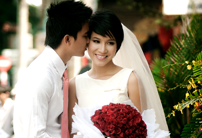 Bận rộn với việc đóng phim nên nữ diễn viên 'Người mẫu' và chồng sắp cưới Thanh Bình thực hiện bộ ảnh cưới theo phong cách đời thường ngay tại chợ Bến Thành TP HCM. Đôi uyên ương diễn xuất tự nhiên, ghi lại những khoảnh khắc ngọt ngào, lãng mạn khi sánh đôi trên đường phố. Bộ ảnh có sự hỗ trợ của stylist Tân Đà Lạt và chuyên gia trang điểm Huỳnh Lợi.